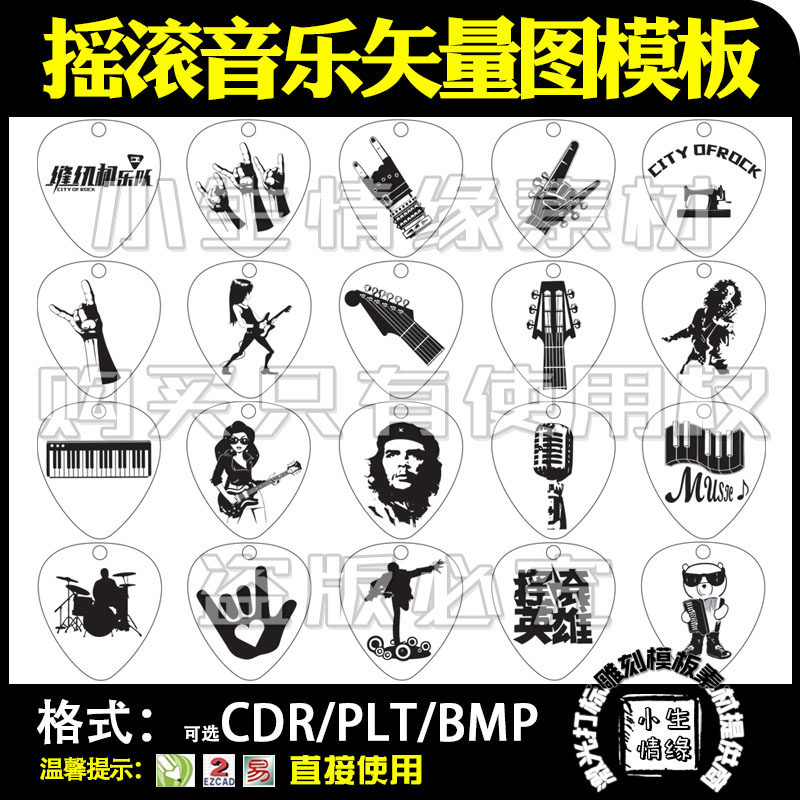 激光雕刻打標(biāo)機(jī)縫紉機(jī)樂隊(duì)矢量圖案吉他撥片搖滾音樂刻字素材模板