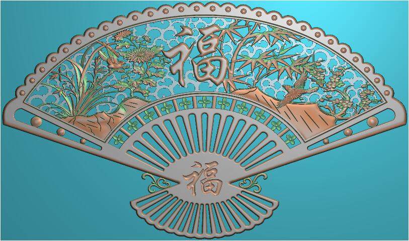 鏤空扇形梅蘭竹菊福掛件精雕圖屏風(fēng)窗花木雕浮雕圖雕刻圖素材451