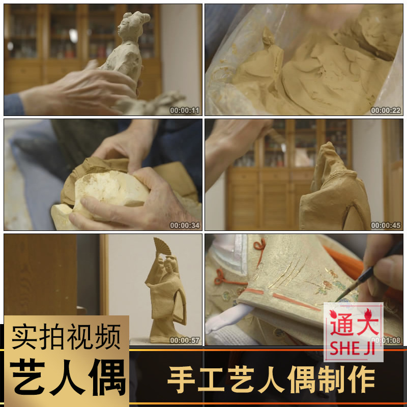 日本特色手工藝人偶制作上色雕刻玩偶實拍視頻素材特寫4K工藝品