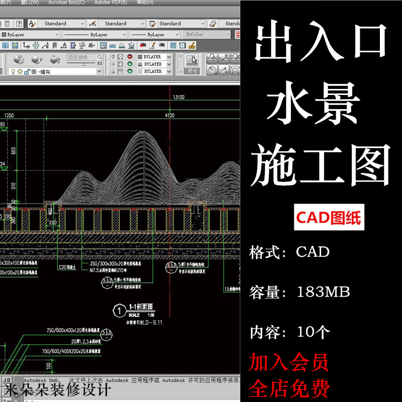 新中式亞洲居住區(qū)出入口廣場(chǎng)水景噴泉設(shè)計(jì)方案CAD施工平立剖面圖