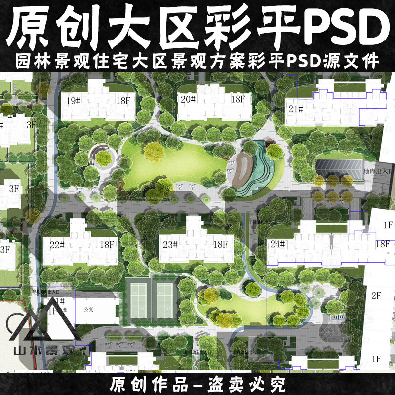 2021原創(chuàng)居住小區(qū)景觀設(shè)計(jì)彩平圖PS素材住宅大區(qū)景觀彩平PSD素材