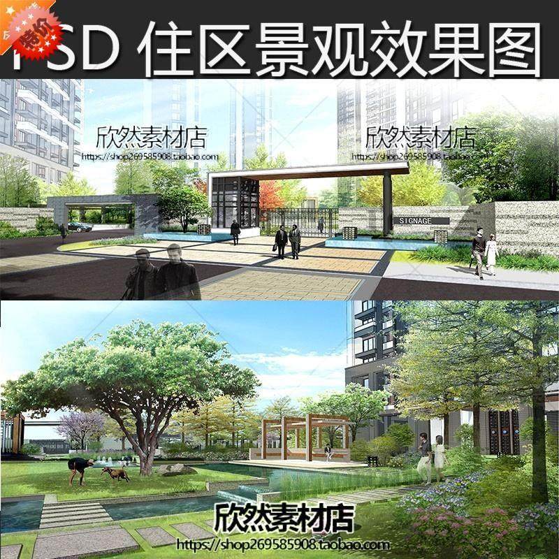 J41-園林設(shè)計(jì)住宅小區(qū)居住區(qū)小區(qū)入口景觀ps效果圖psd分層素材