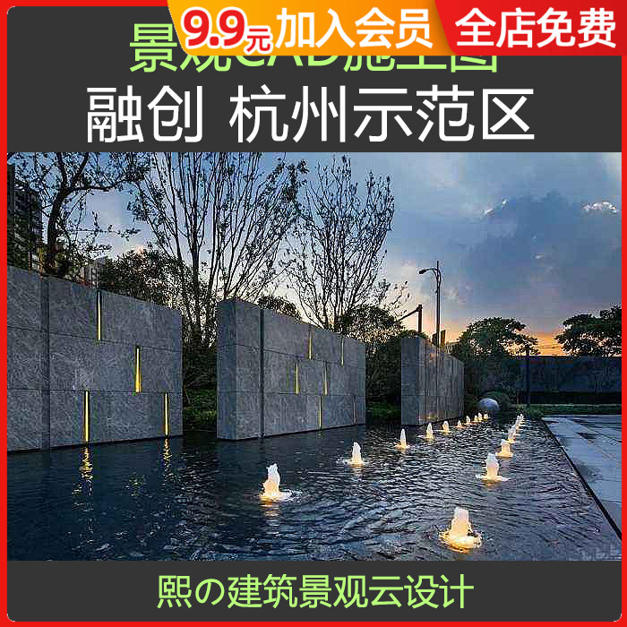新中式居住區(qū)示范區(qū)景觀CAD施工圖大門LOGO墻照明鏡面水池水景墻