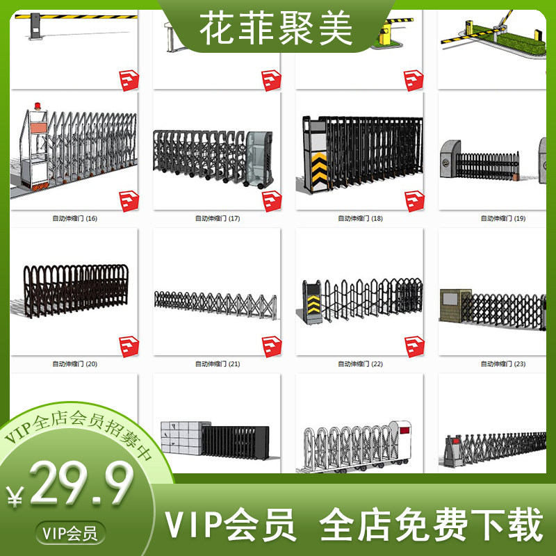 住宅小區(qū)居住區(qū)大門入口起落桿自動(dòng)伸縮門道閘擺閘電動(dòng)門禁SU模型