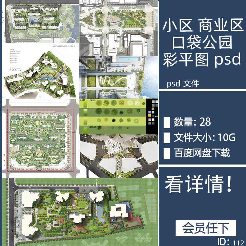居住區(qū)商業(yè)區(qū)口袋公園景觀設(shè)計(jì)規(guī)劃平面圖彩平圖PSD分層后期素材