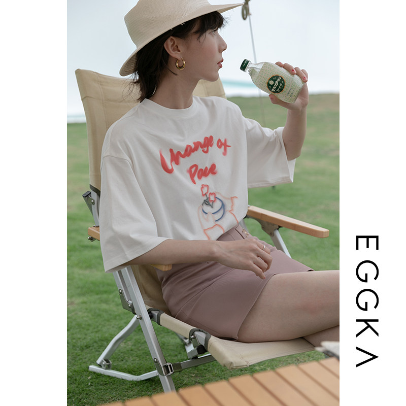 EGGKA白色字母印花短袖T恤女韓版寬松設(shè)計感上衣2021年夏季新款主營:
