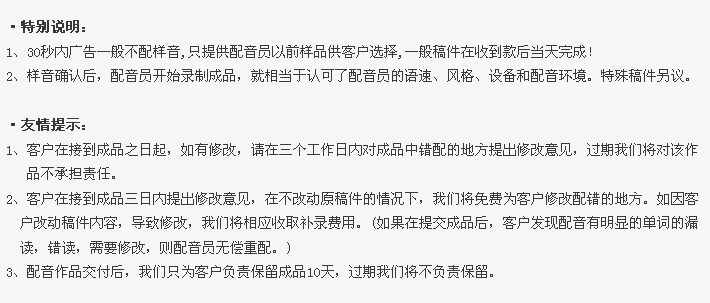 1. 免費提供配音樣音;