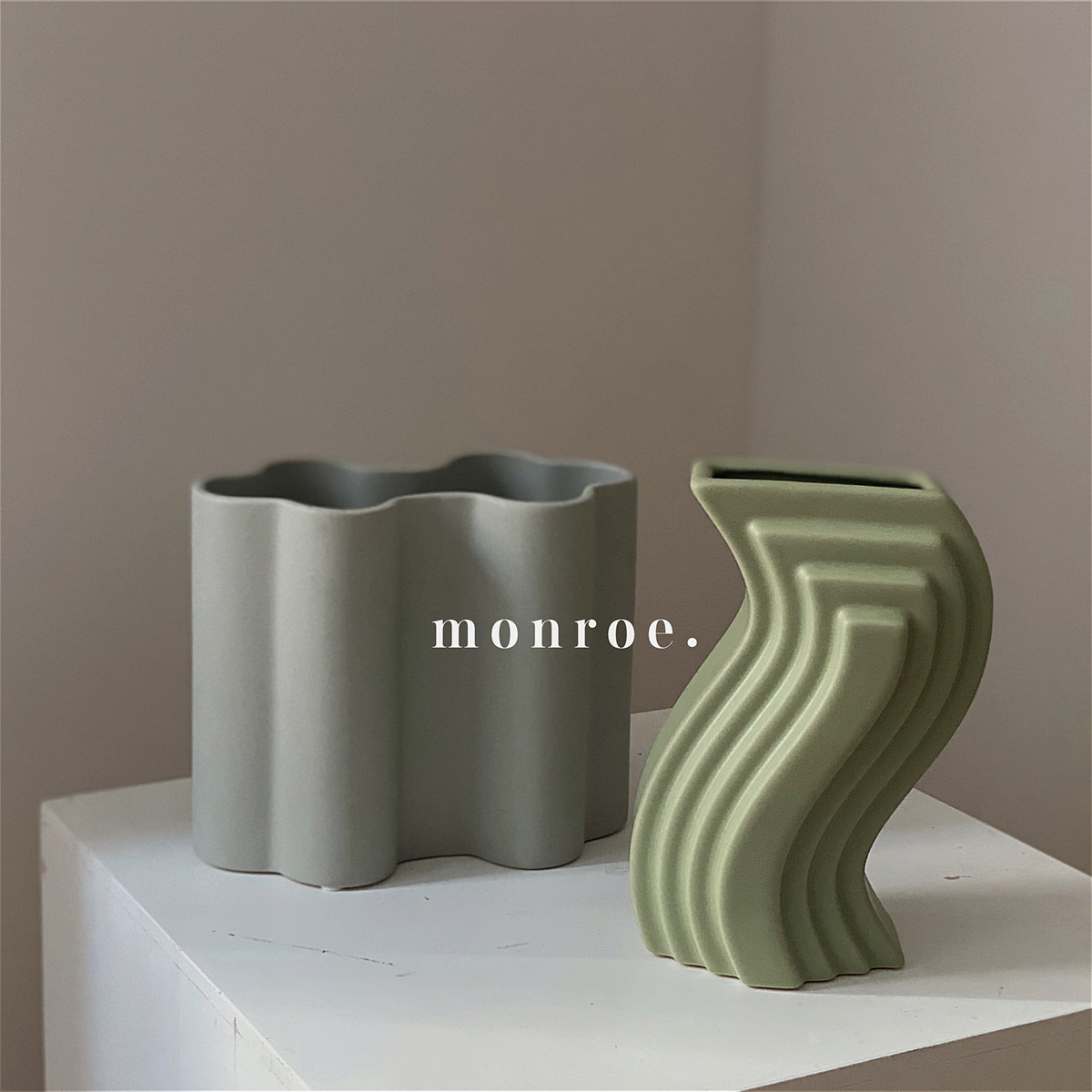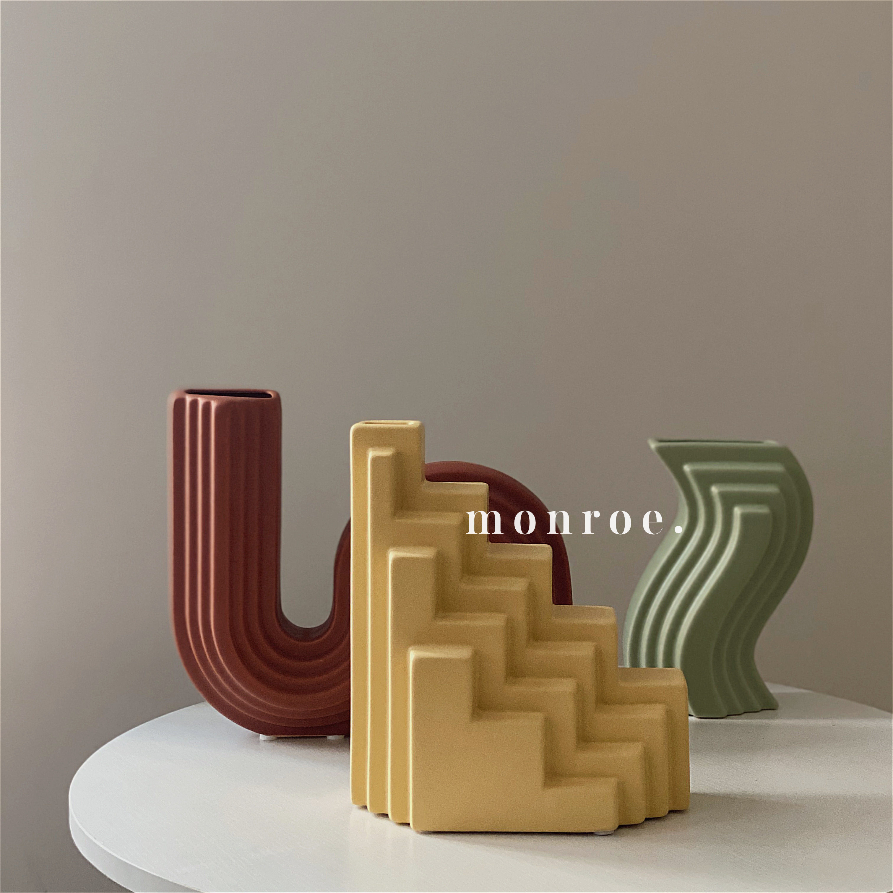 MONROE夢鹿工作室莫蘭迪北歐設(shè)計陶瓷花瓶擺件樣板間裝飾家裝工裝