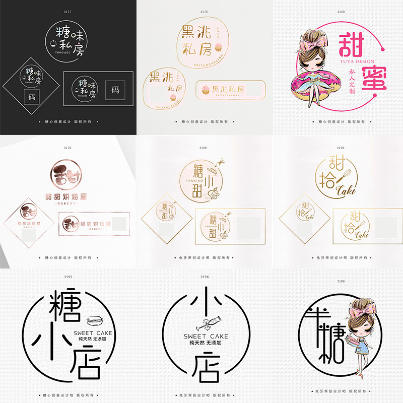 蛋糕店logo設計原創(chuàng)意網(wǎng)紅淘寶甜品面包頭像水印店標頭招牌制作價格行情
