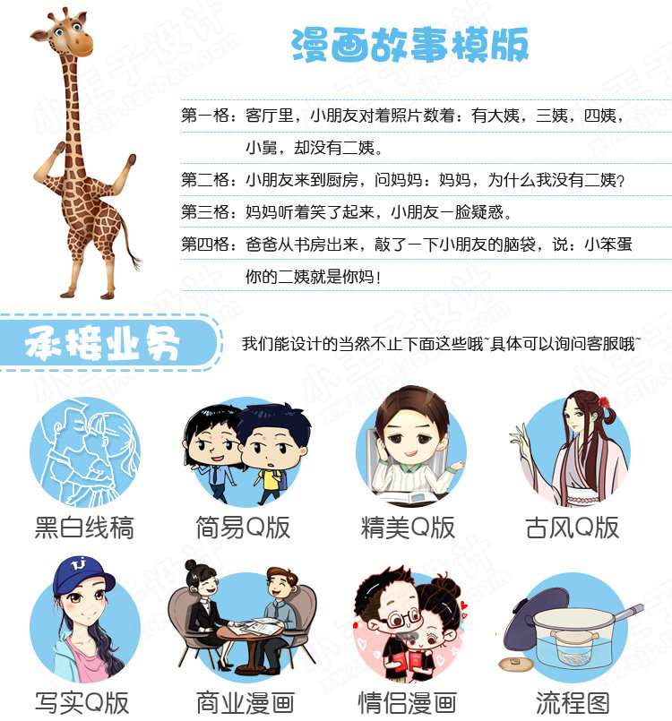 • 企业商业卡通动漫插画插图设计 代画四格真人转Q版漫画人物定制