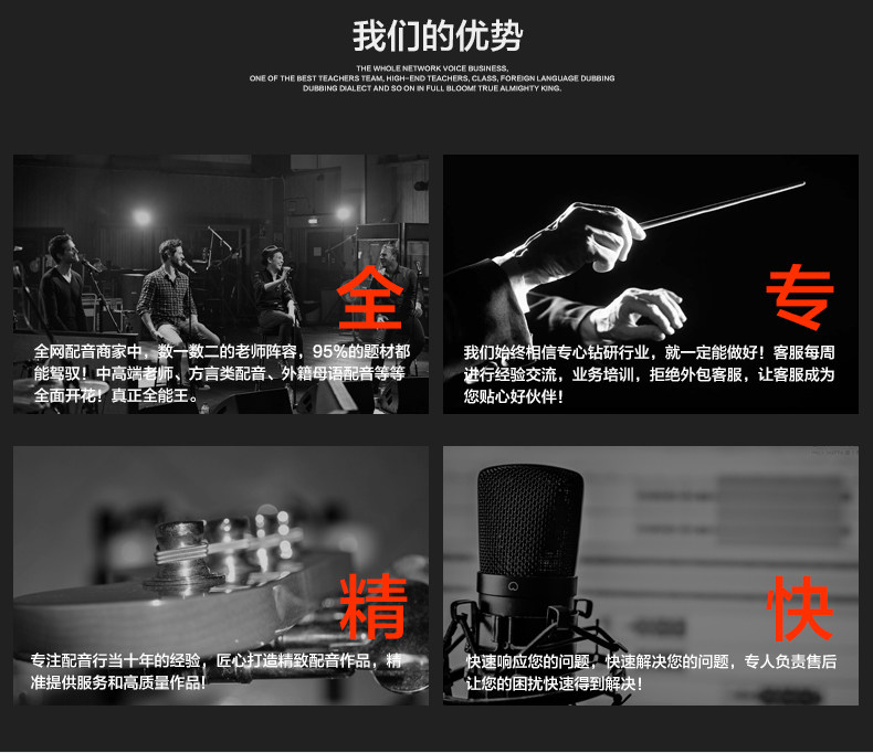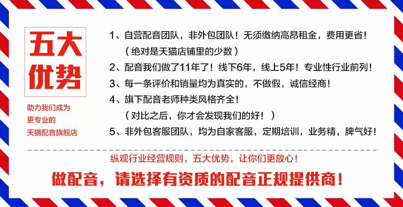 配音女声男声真人广告录音叫卖语音录音彩铃制作外语专题片录制.
