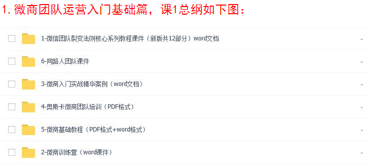團(tuán)隊(duì)運(yùn)營(yíng)課程1-23套課件,網(wǎng)盤資料截圖展示如下: