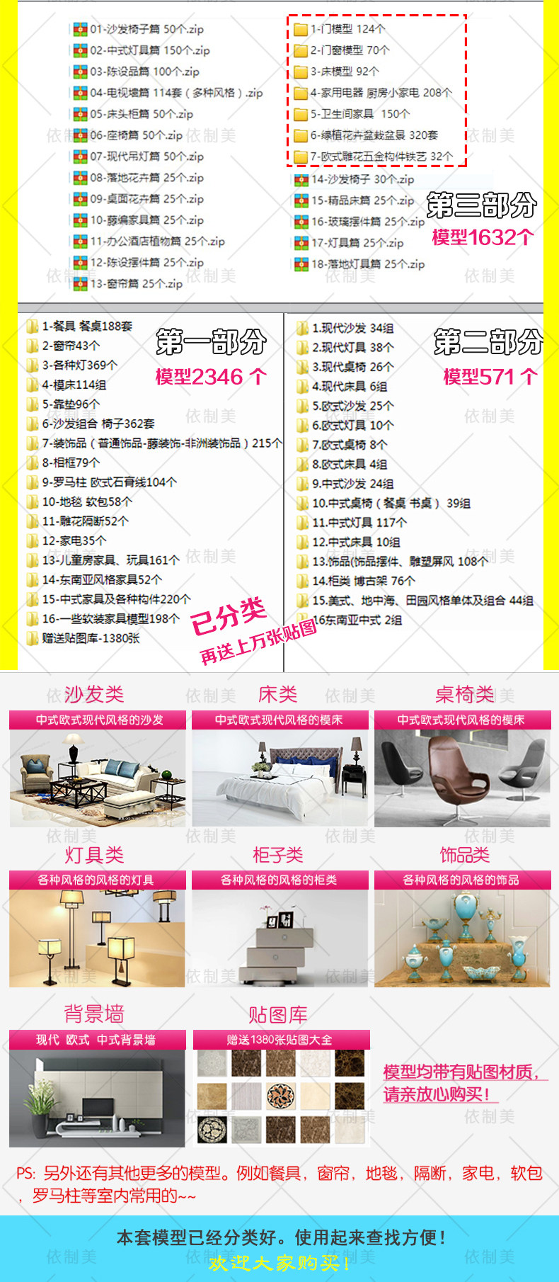 3D单体模型库 材质贴图室内家装家具3dmax素材欧式现代中式北欧推广热卖行情