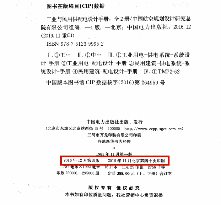 工业与民用供配电设计手册 第四版(上下册)配四 供配电手册考试手册注册电气工程师 工业与民用配电设计手册(精) 40次印刷价格行情