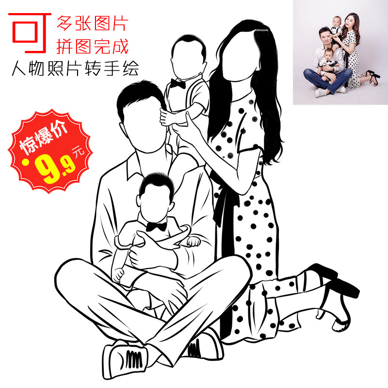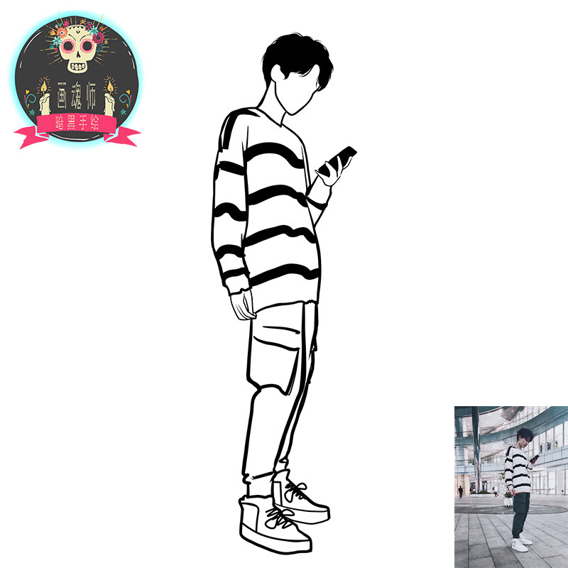 手繪頭像定制Q版設(shè)計(jì)漫畫(huà)紋身黑白線條情侶照片簡(jiǎn)筆畫(huà)真人轉(zhuǎn)手繪價(jià)格行情