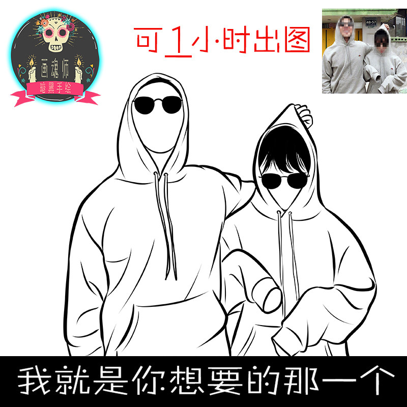 手繪頭像定制Q版設(shè)計(jì)漫畫(huà)紋身黑白線條情侶照片簡(jiǎn)筆畫(huà)真人轉(zhuǎn)手繪推廣熱賣行情