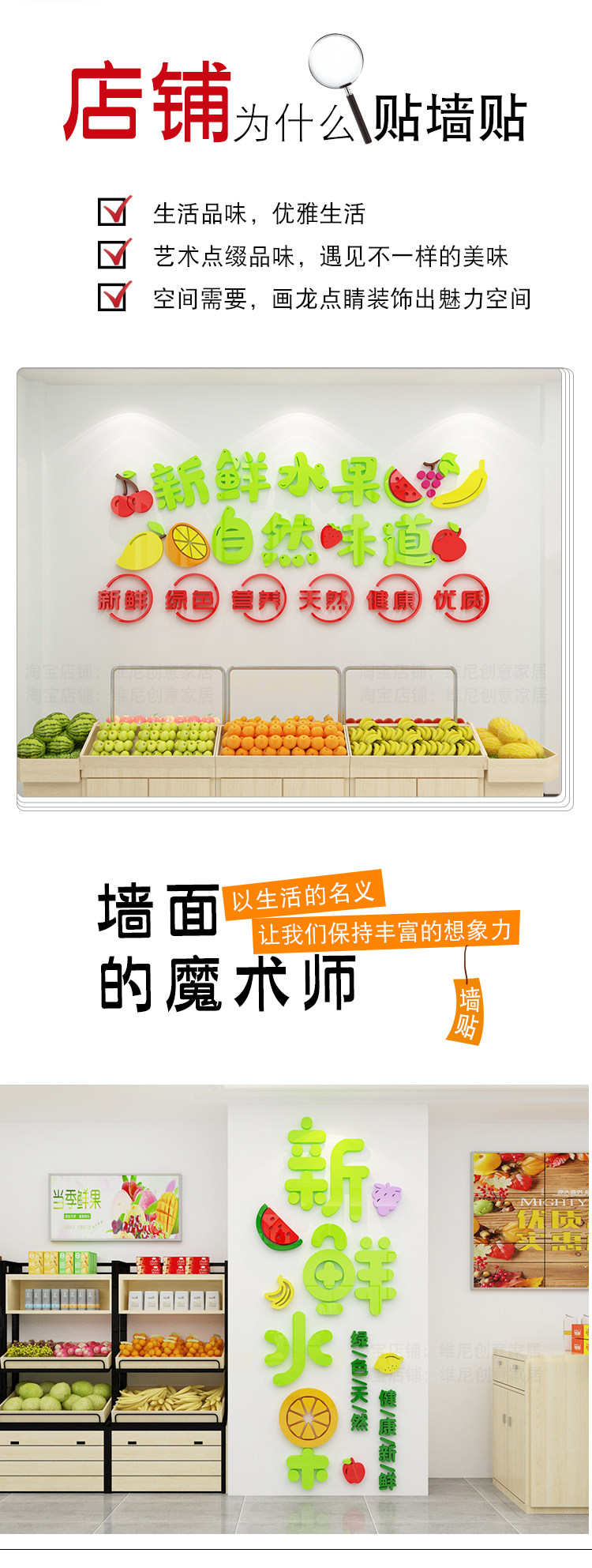 網(wǎng)紅水果店裝飾用品背景墻面貼紙自粘創(chuàng)意廣告海報(bào)圖案畫(huà)裝修布置價(jià)格行情