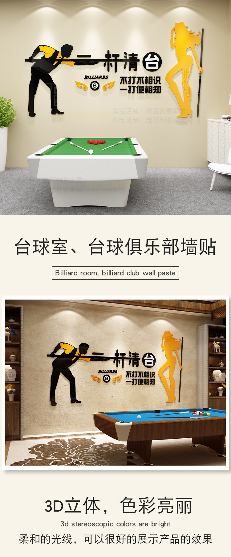 桌臺(tái)球廳室九球斯諾克俱樂(lè)部背景墻面貼壁畫3d立體裝修創(chuàng)意裝飾品推廣熱賣行情
