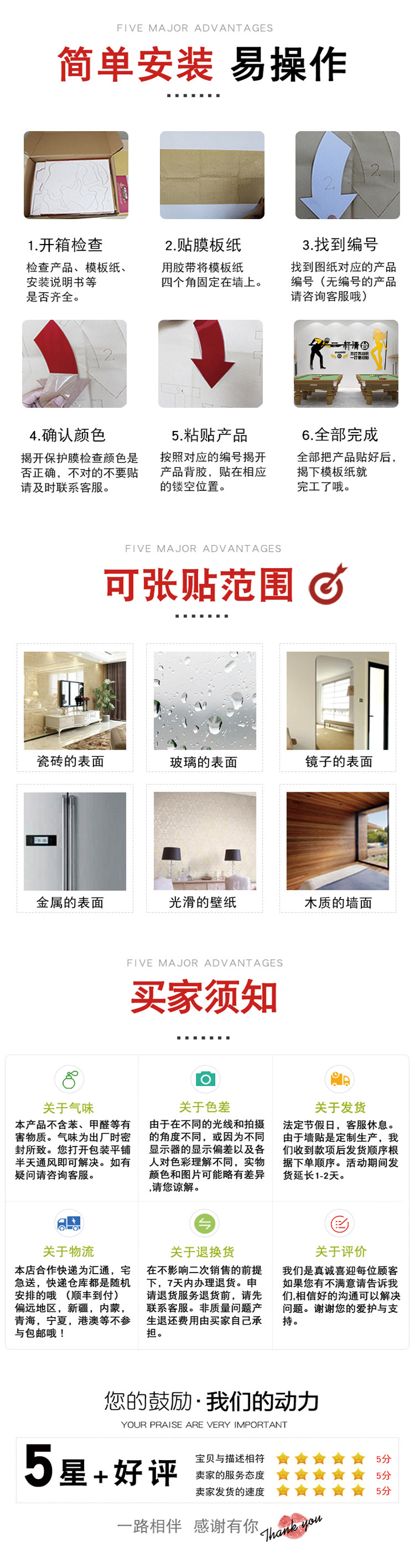 - 墻貼類型:防水墻貼