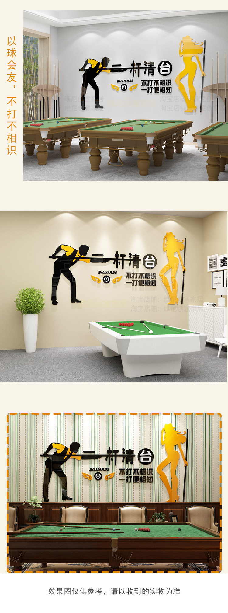 桌臺(tái)球廳室九球斯諾克俱樂(lè)部背景墻面貼壁畫3d立體裝修創(chuàng)意裝飾品