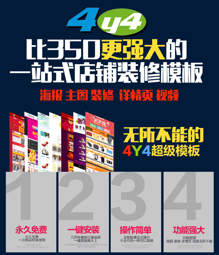 4y4模板全套淘寶店鋪裝修設計定制一鍵安裝永久手機首頁350旗艦版熱門設計聯盟服務商