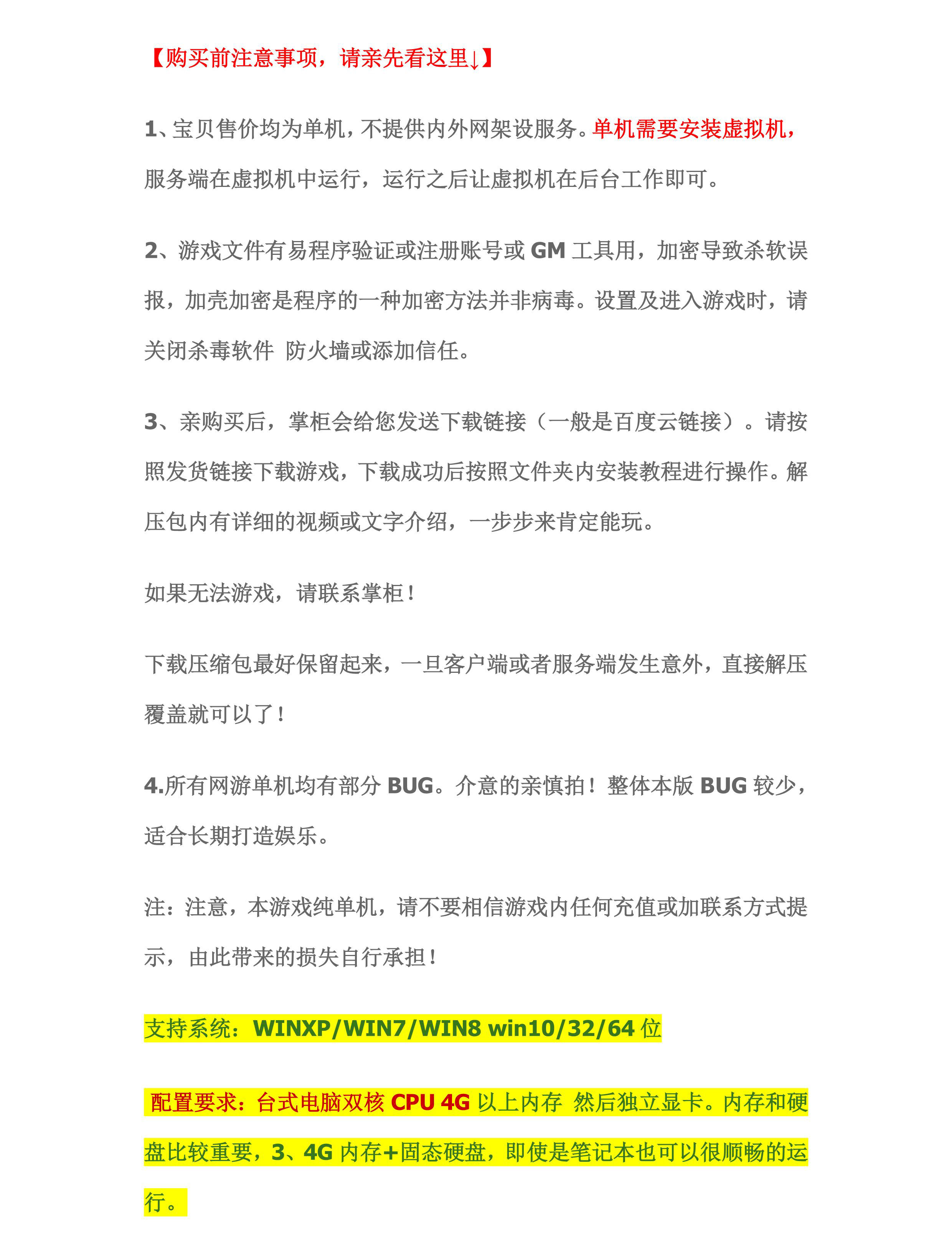 每個端都會有部分BUG,本端主打復古和耐玩,有的地方可能有小問題,不影響游戲,親們看性價比就行了。比不了別人好幾十的端,但是也有自己耐玩的點,追求非常好的親請慎拍,謝謝了!