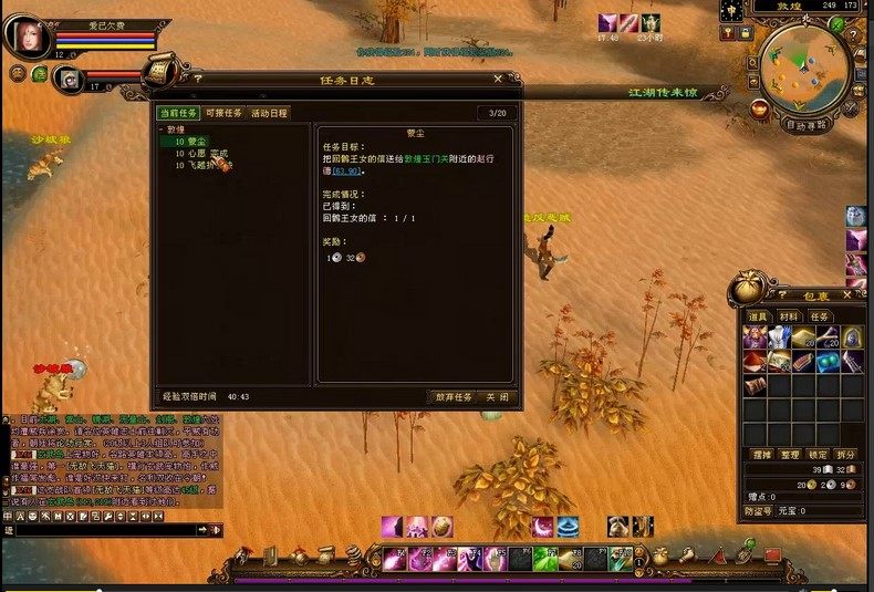 蹴鞠場景中童貫傳送到洛陽時卡場景的問題,解決了鹿茸單采香丸一組只有20個數量的問題,樓蘭金久靈處換取品質高門派套裝只需要10個怪物相冊.