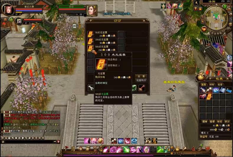 洛陽、蘇州有各種擺攤,可以直接交子或金買東西!洛陽可以直接金換YB。