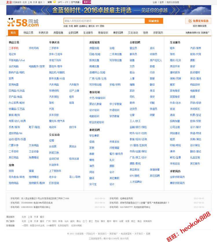 仿58同城源碼 本地供求信息發(fā)布網(wǎng)站源碼多城市分類信息網(wǎng)站模板推廣熱賣行情