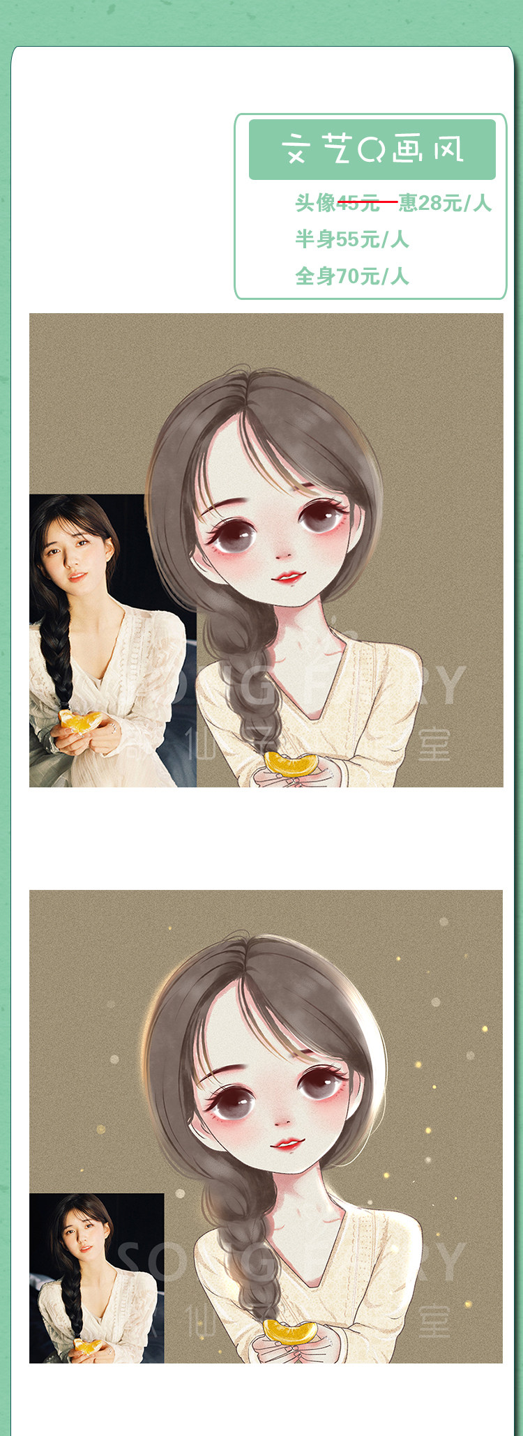 Q版手繪頭像設(shè)計(jì)文藝可愛(ài)萌卡通人物形象真人照片漫畫(huà)圖畫(huà)像板繪價(jià)格行情