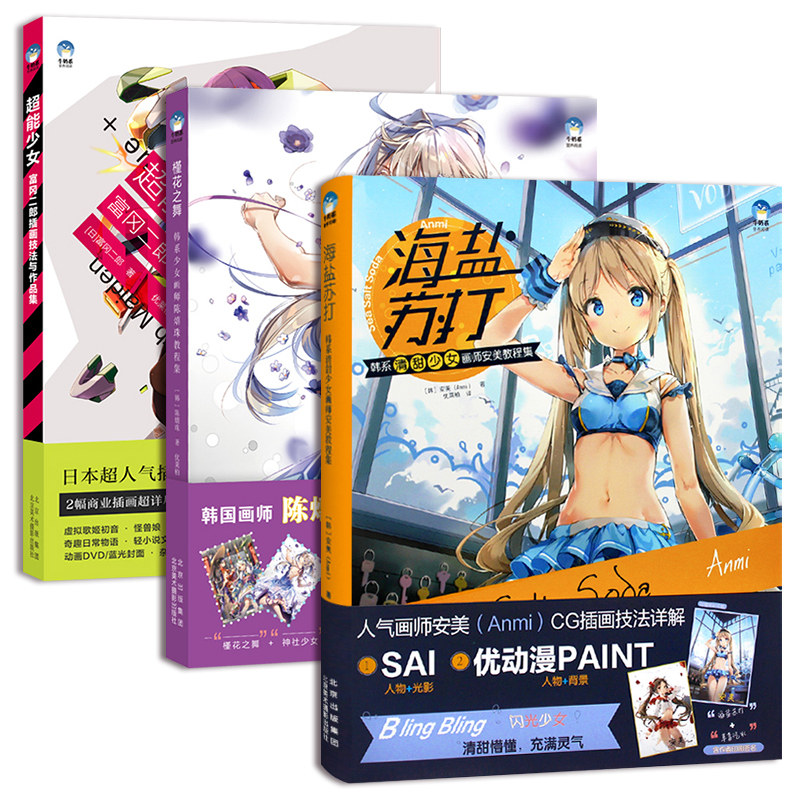 三册 海盐苏打+超能少女+槿花之舞 CG插画教程书 商业插画技法详解 安美Anmi 富冈二郎 陈熺珠作品集 牛奶系 SAI优动漫PAINT 书籍价格行情