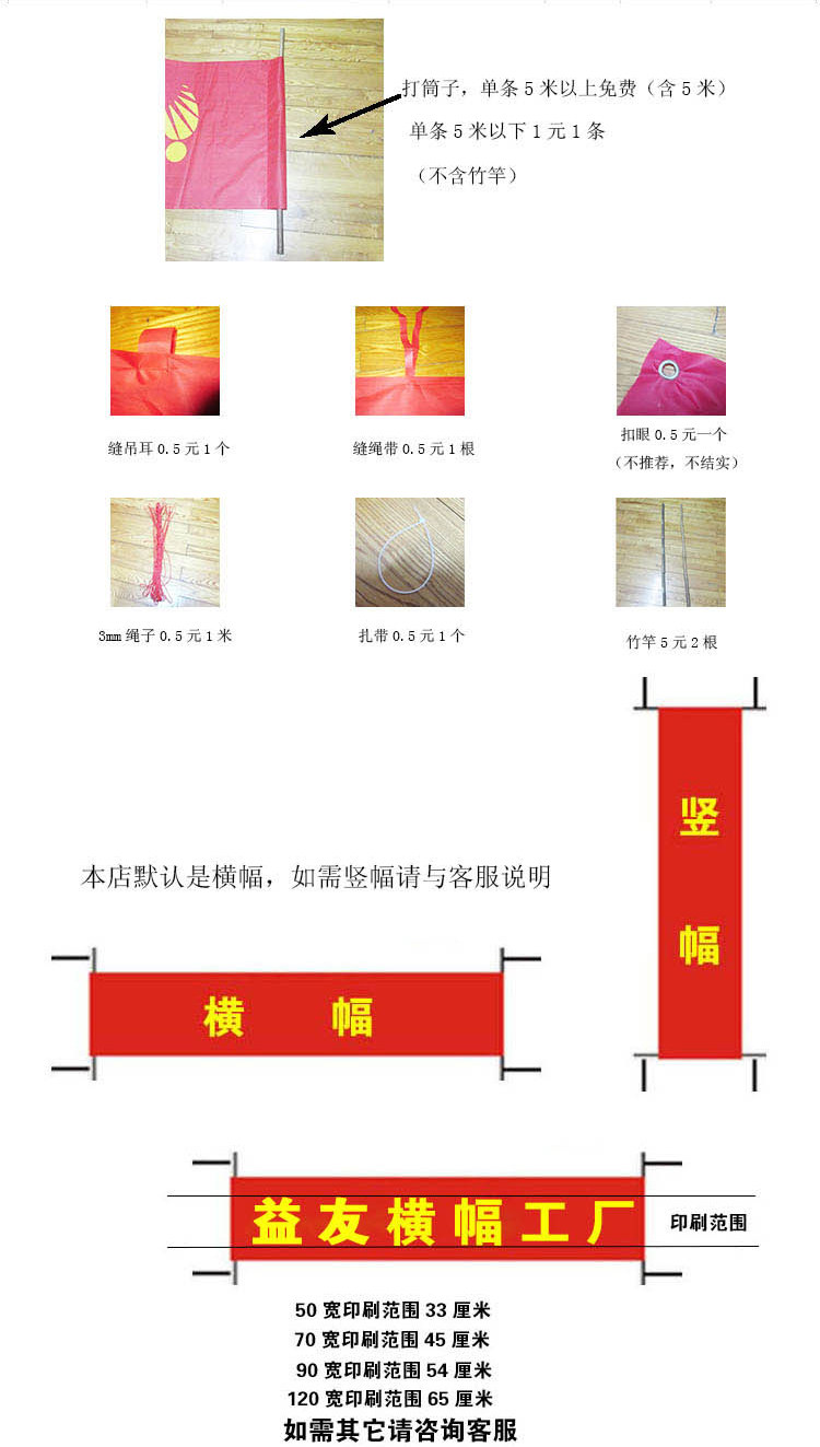 - 條幅布顏色:紅黃藍(lán)綠白