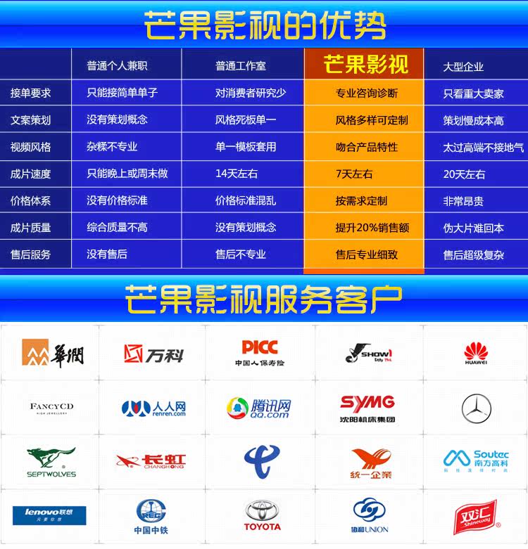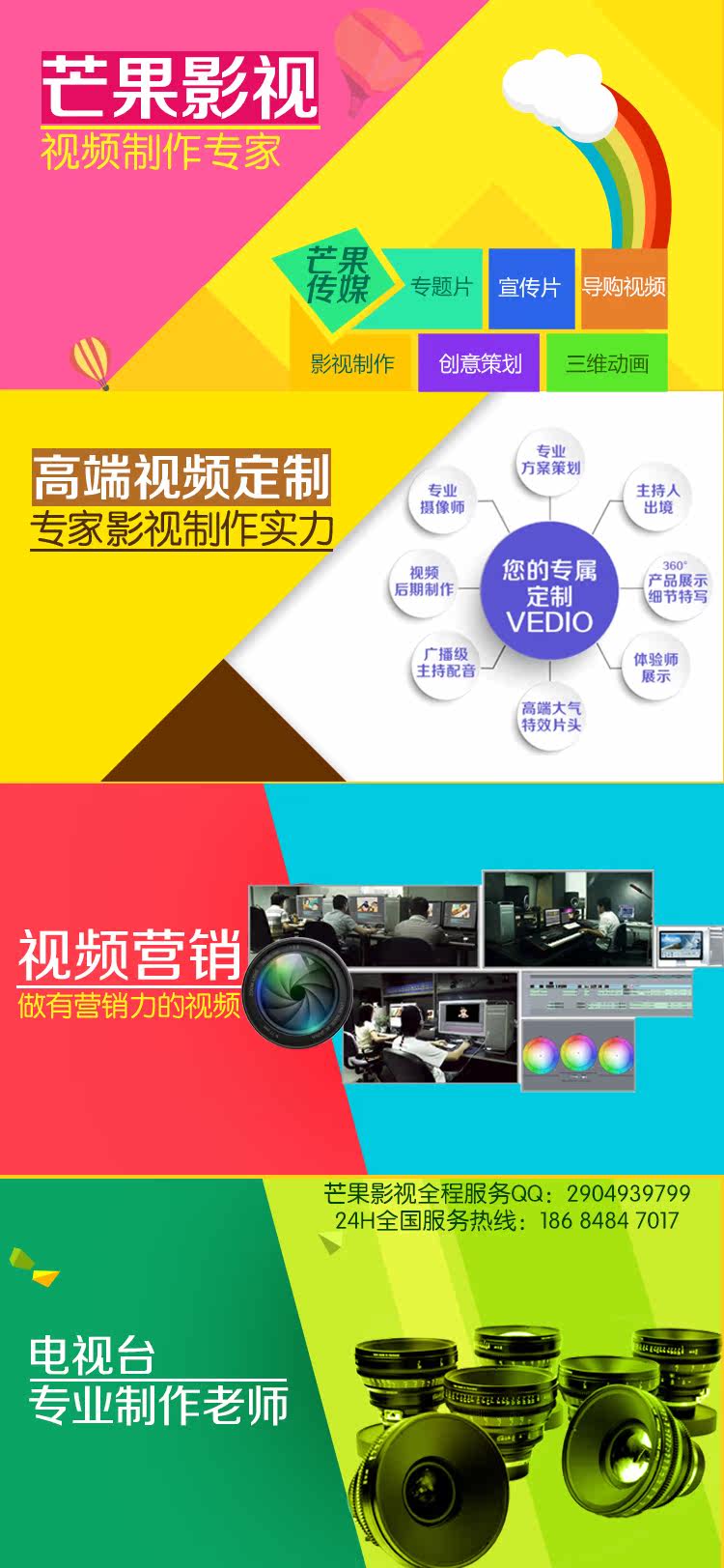 芒果影視堅(jiān)持精品化,堅(jiān)持用創(chuàng)意打動(dòng)客戶,用耐心提高服務(wù)質(zhì)量。我們認(rèn)為,服務(wù)非常重要的不只是讓您滿意,而是使您獲得意外的驚喜。我們重視您的每一個(gè)中肯評(píng)價(jià)。您如果滿意,并給我媚勵(lì)的好評(píng),我們感激不盡,如果您有任何不滿意,請(qǐng)先跟我玫通,相信任何合理的問題都可以迅速給您解決。