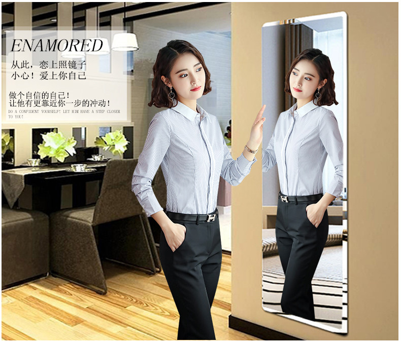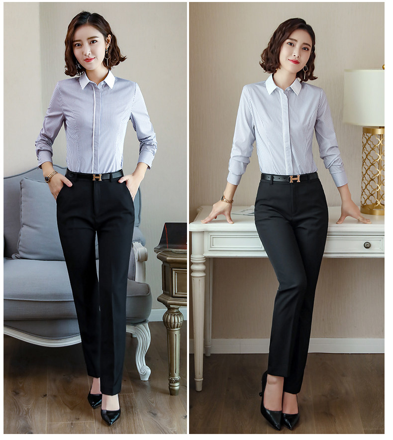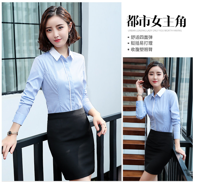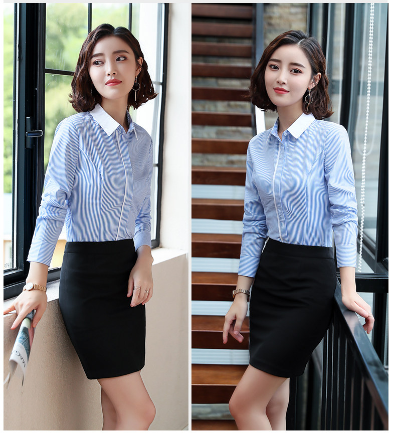 酒店服務員長袖職業(yè)襯衫藍色條紋職業(yè)商務正裝前臺領班襯衣秋冬裝價格行情