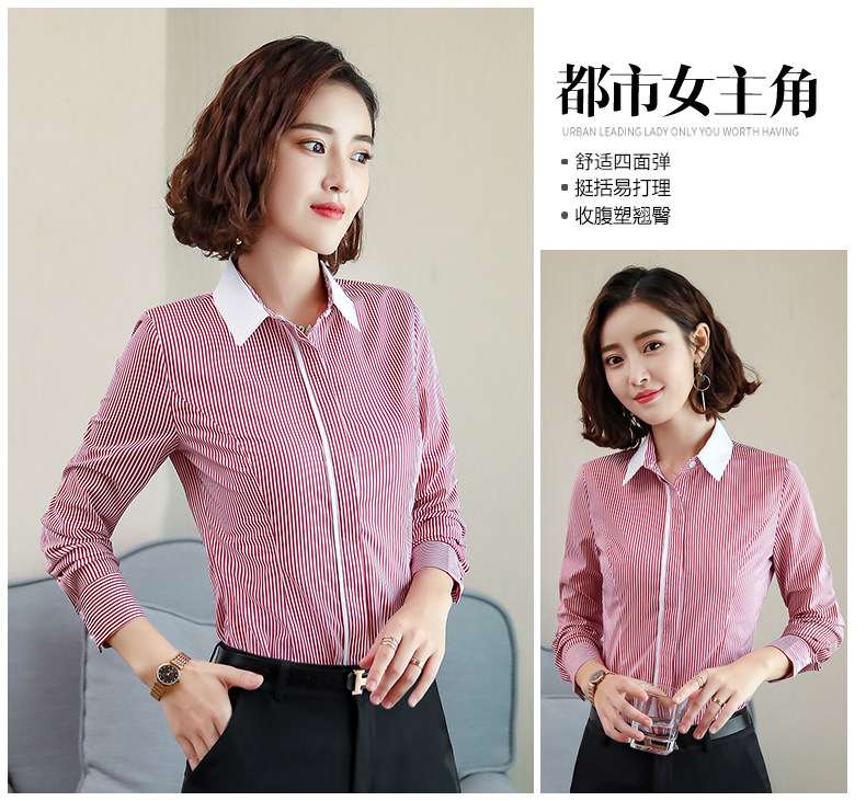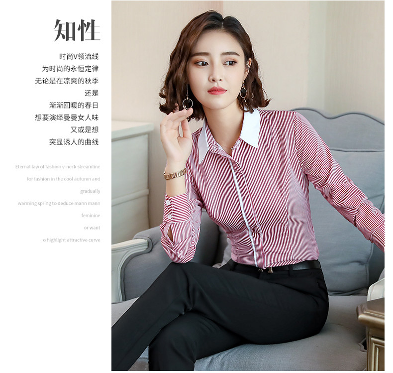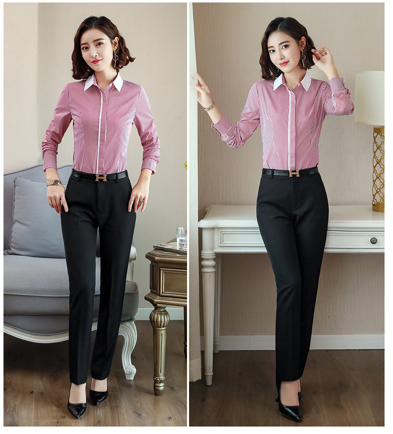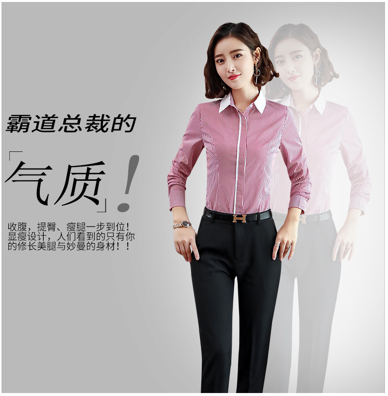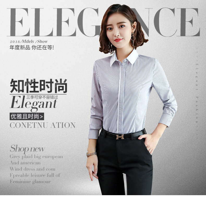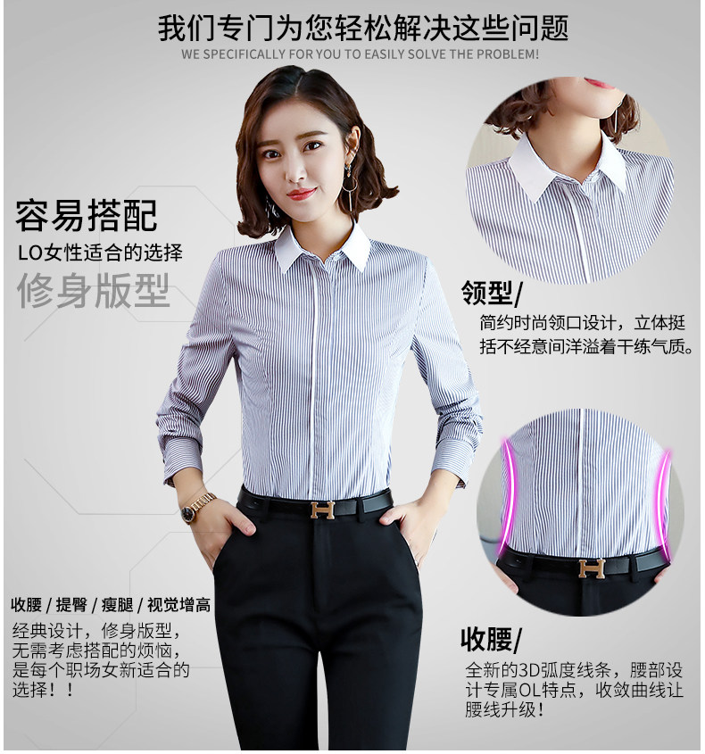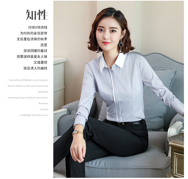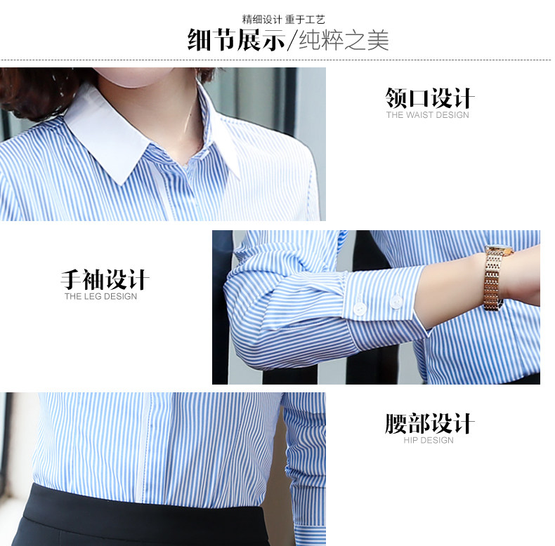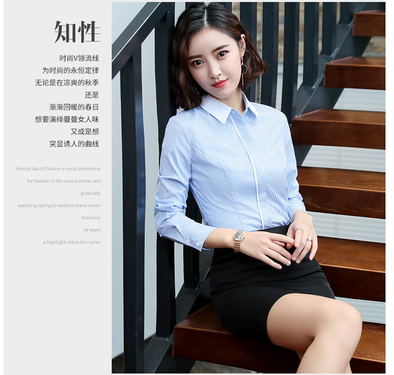 酒店服務員長袖職業(yè)襯衫藍色條紋職業(yè)商務正裝前臺領班襯衣秋冬裝推廣熱賣行情