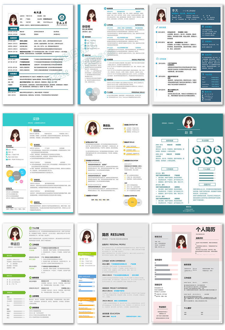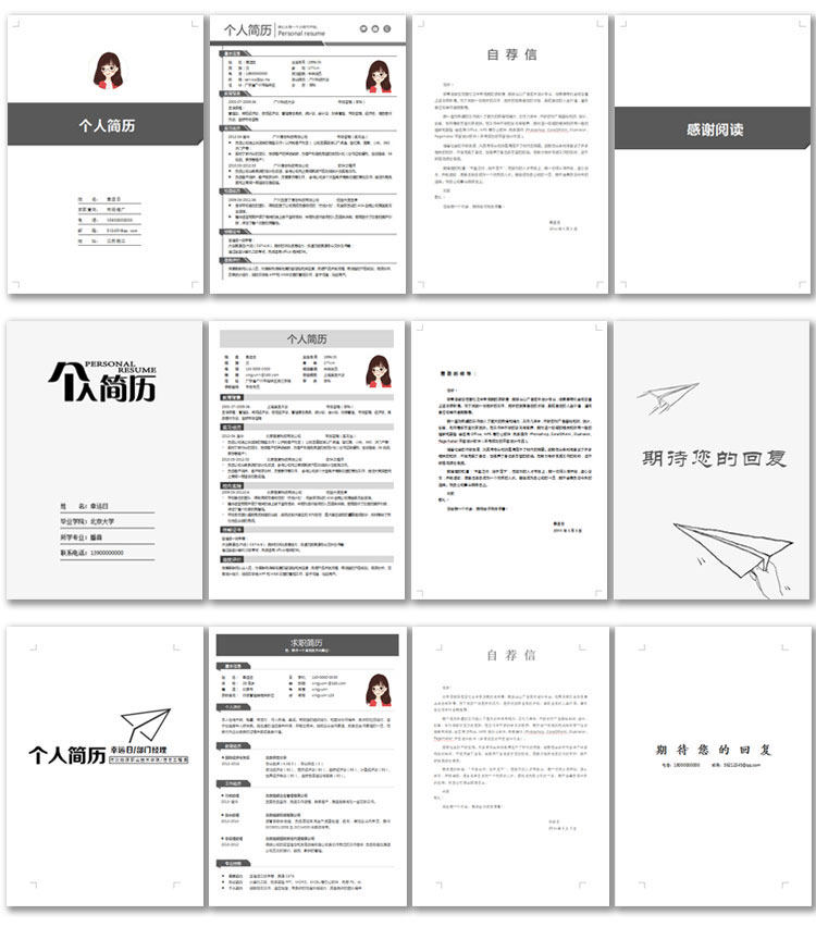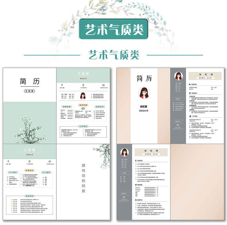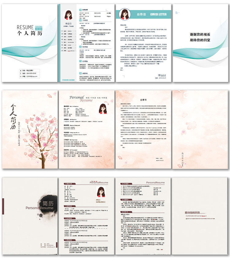 應(yīng)屆畢業(yè)生大學(xué)生58個人文藝求職簡歷模板wps清創(chuàng)意封面word價格行情