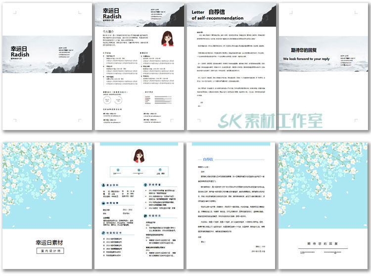 應(yīng)屆畢業(yè)生大學(xué)生58個人文藝求職簡歷模板wps清創(chuàng)意封面word