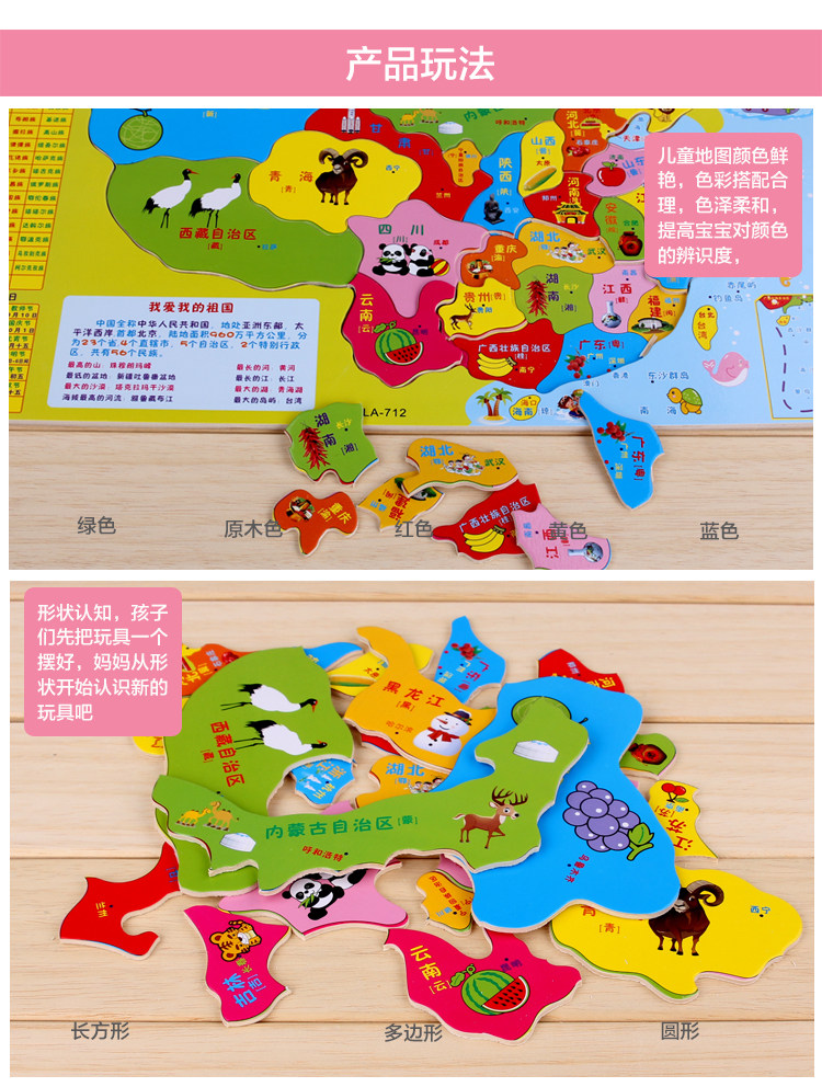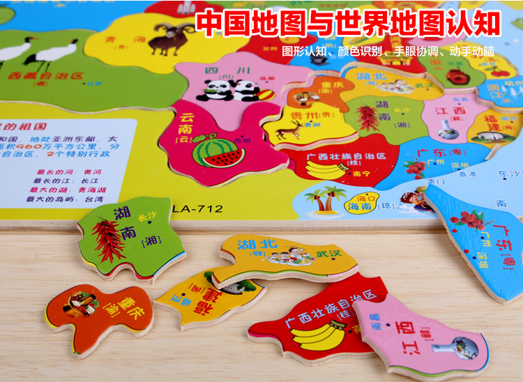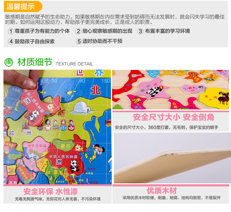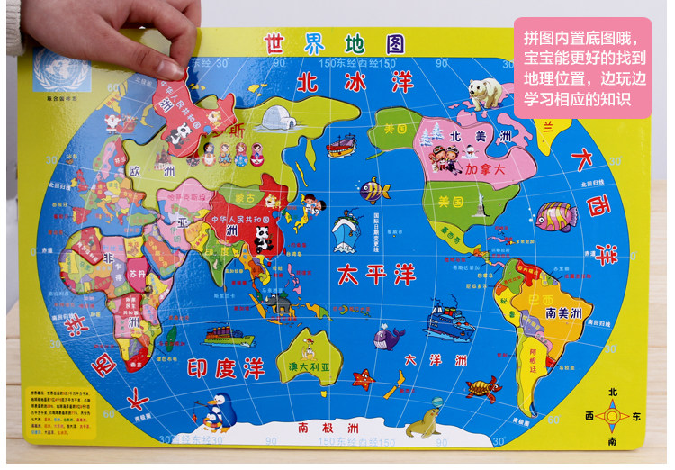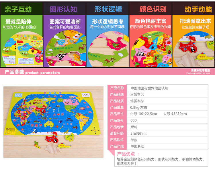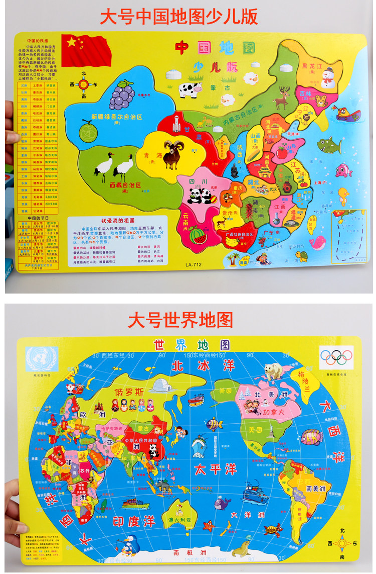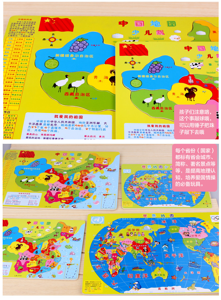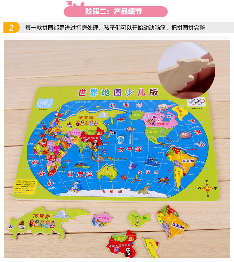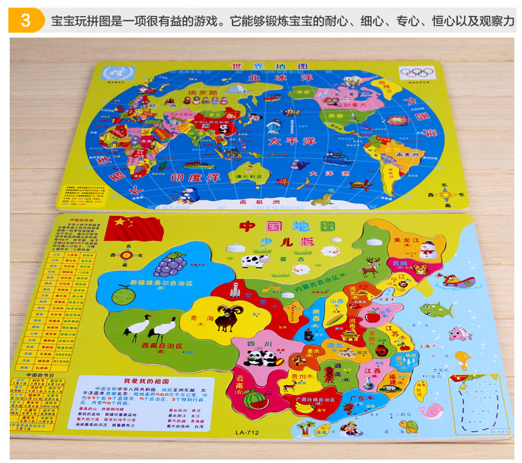 木质儿童拼图3567岁以上早教益智力中国世界地图地理认知玩具推广热卖行情