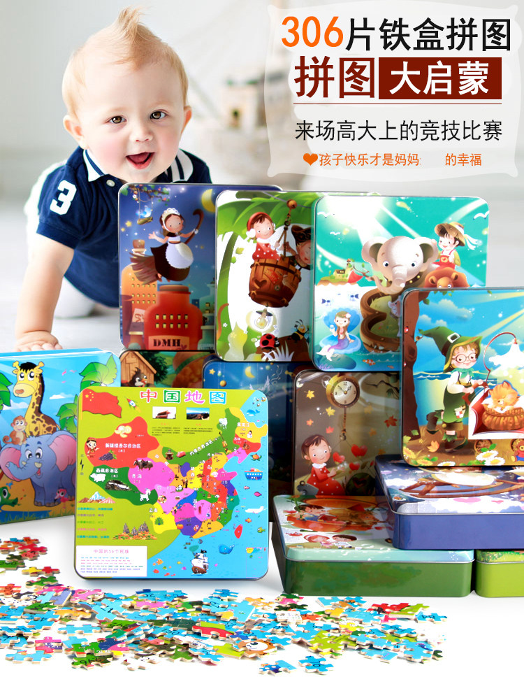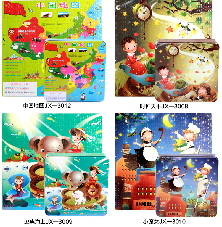 300/500/1000片拼图铁盒儿童益智力拼图成人木制减压积木解压玩具推广热卖行情
