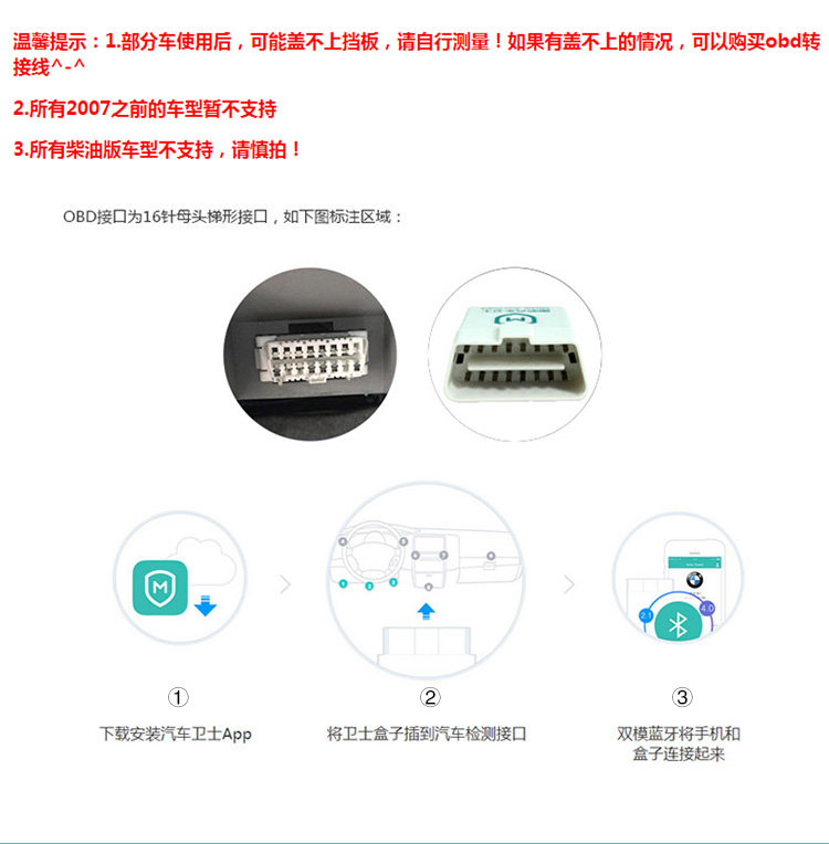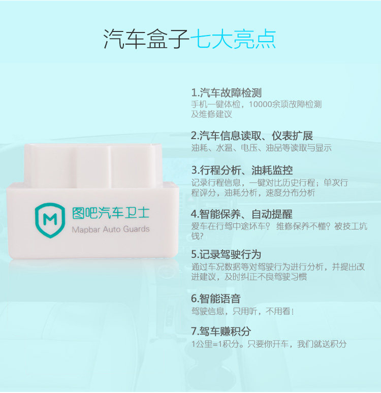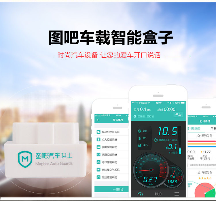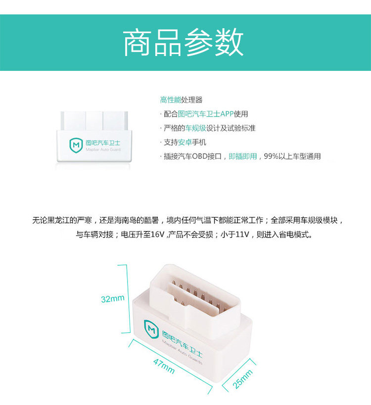 本宝贝只含图吧汽车卫士感知器单品【仅支持安卓设备使用】,不含HUD反射膜及防滑垫。购买HUD套装请到套装页面购买。