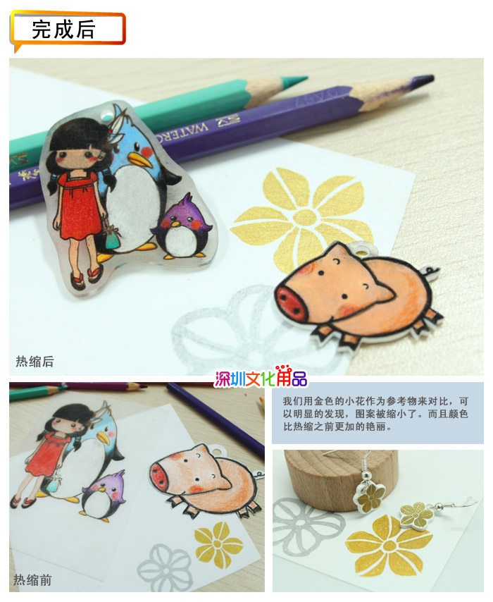 彩色熱縮片 已打磨彩鉛筆橡皮章DIY手繪手機(jī)鏈飾品定制材料熱縮片推廣熱賣行情