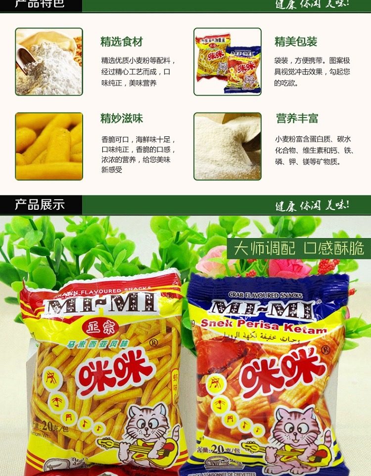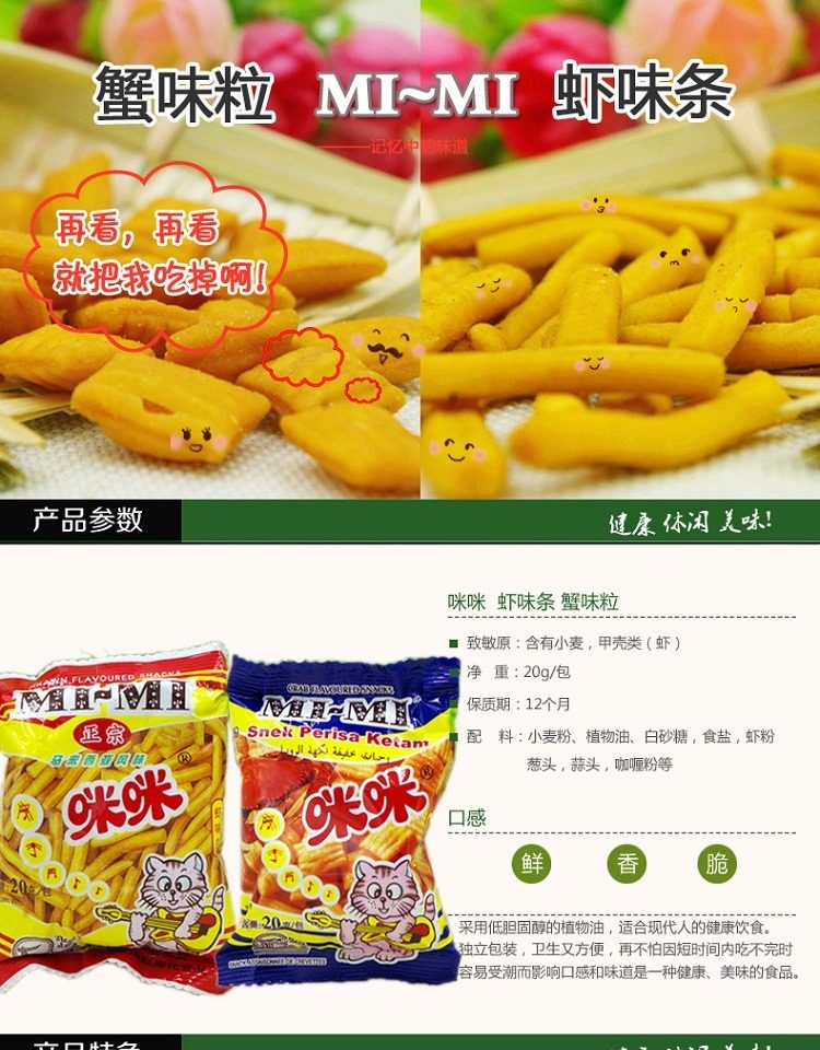 咪咪蝦條蟹粒馬來(lái)西亞風(fēng)味懷舊零食蝦味條蟹味粒童年80后回憶20g推廣熱賣行情