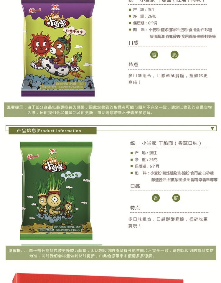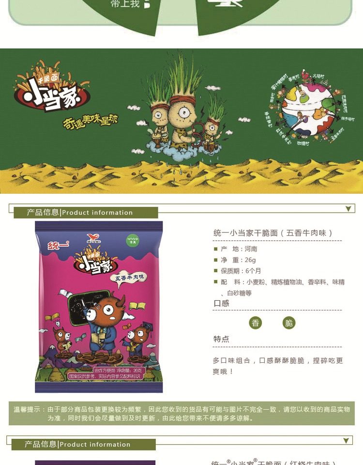 - 產(chǎn)品名稱:統(tǒng)一小當(dāng)家五香牛肉干脆面26g