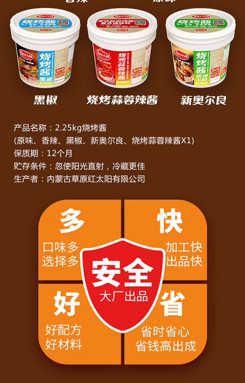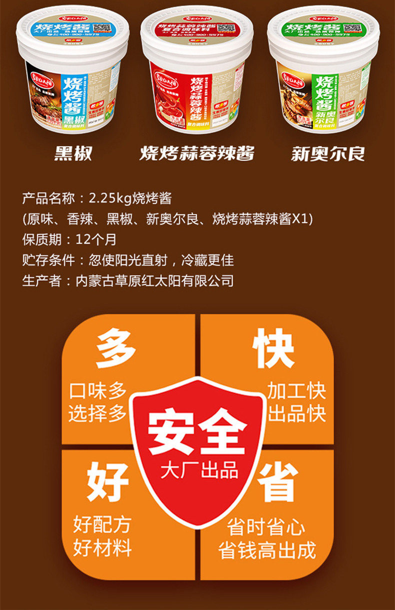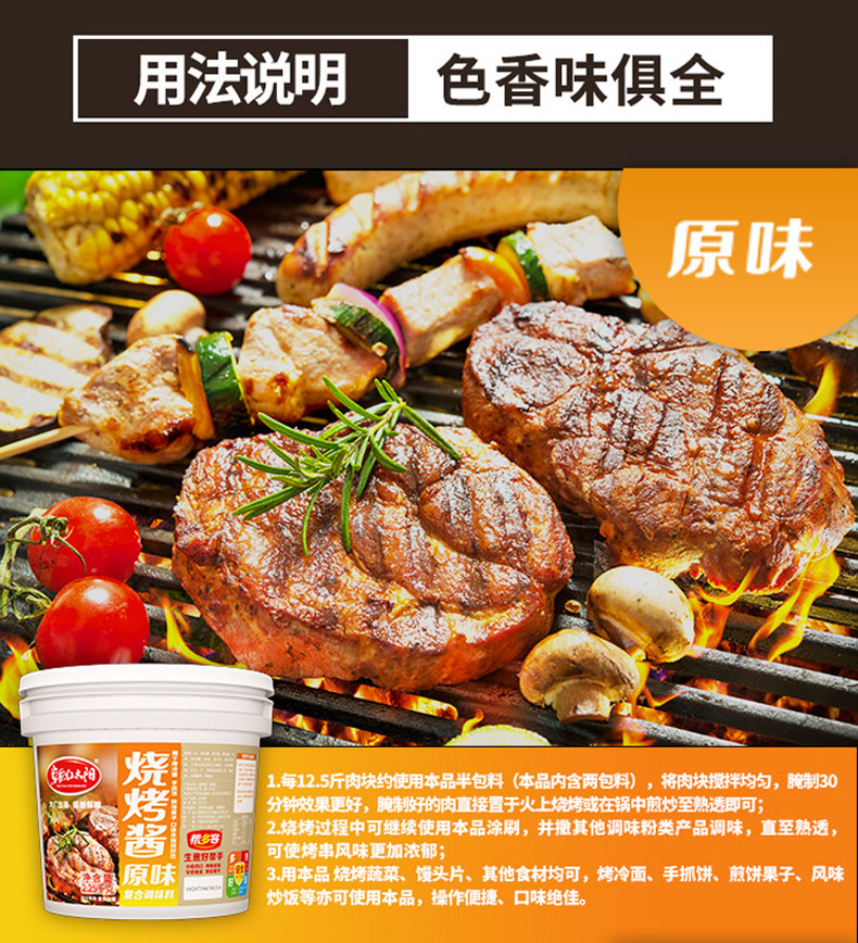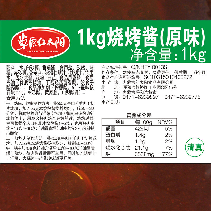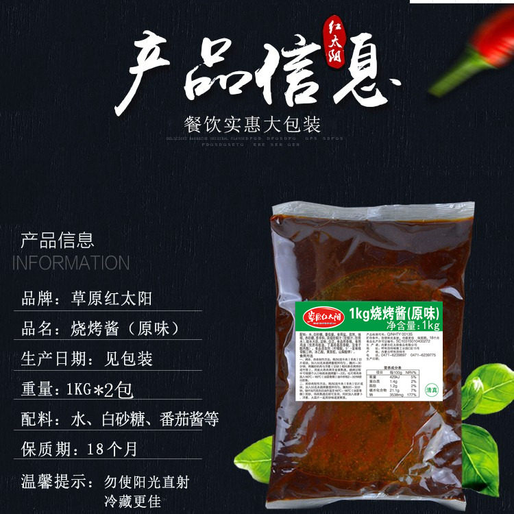 草原紅太陽燒烤醬原味1kg*2包 商用烤肉腌料羊肉串調料餐飲裝包郵價格行情
