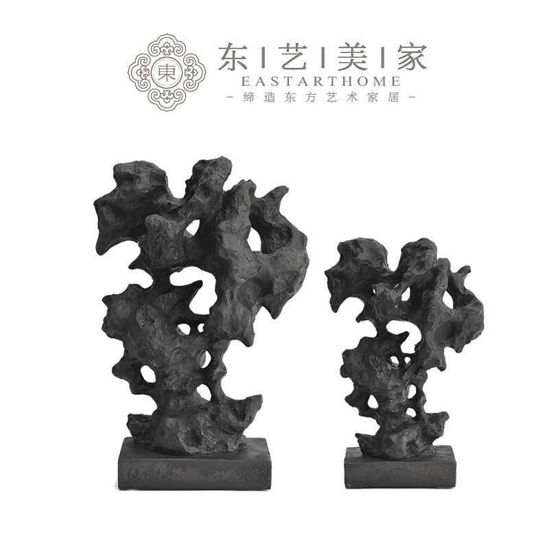 新中式假山擺件黑色仿太湖石裝飾品售樓中心樣板房間玄關(guān)軟裝配飾
