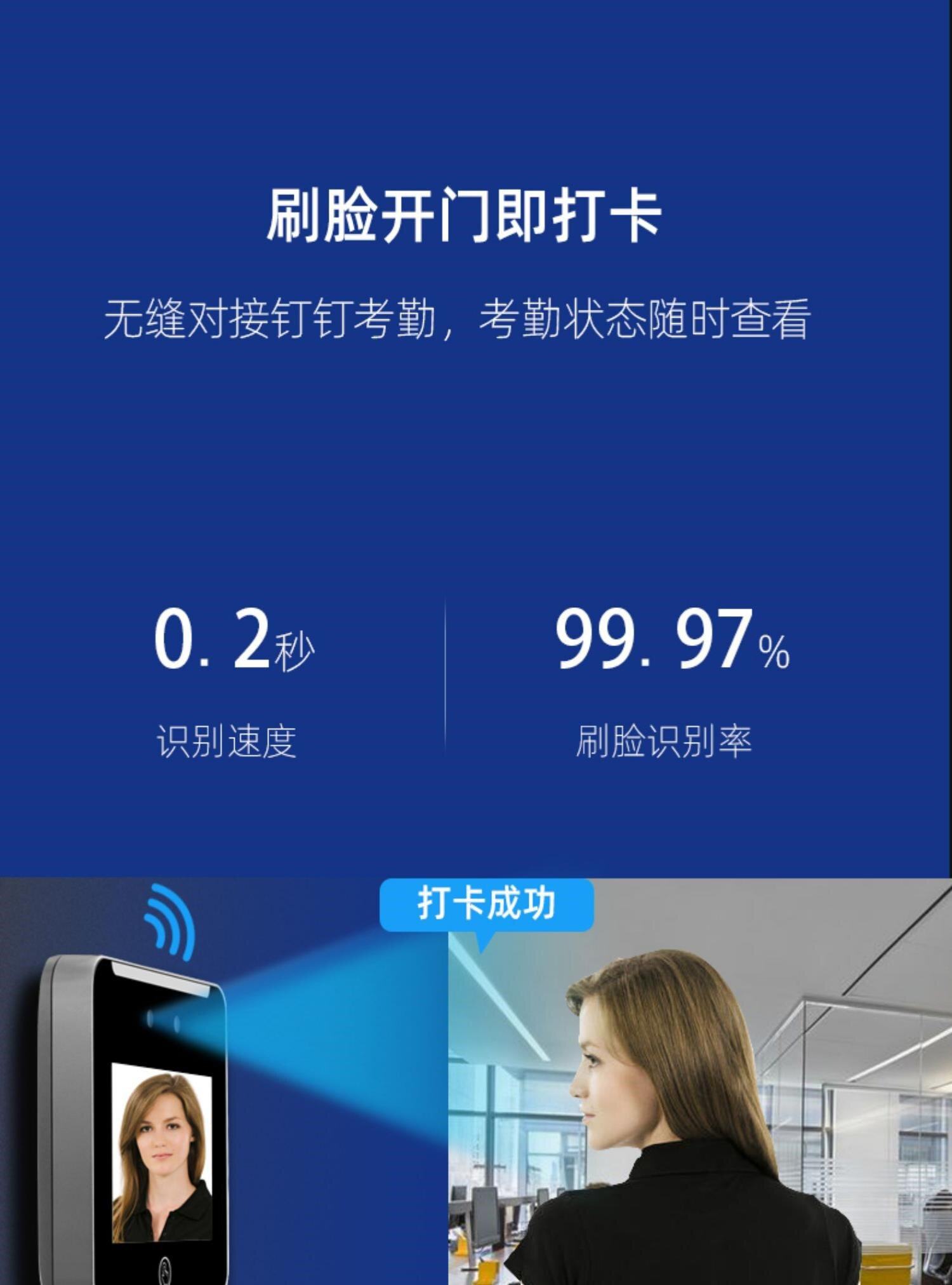 钉钉多功能企业办公人脸打卡刷脸云考勤 智能玻璃门禁系统一体机