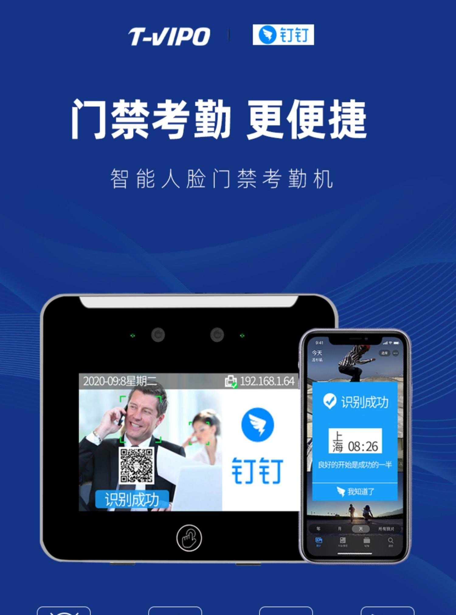 钉钉多功能企业办公人脸打卡刷脸云考勤 智能玻璃门禁系统一体机热门设计联盟服务商