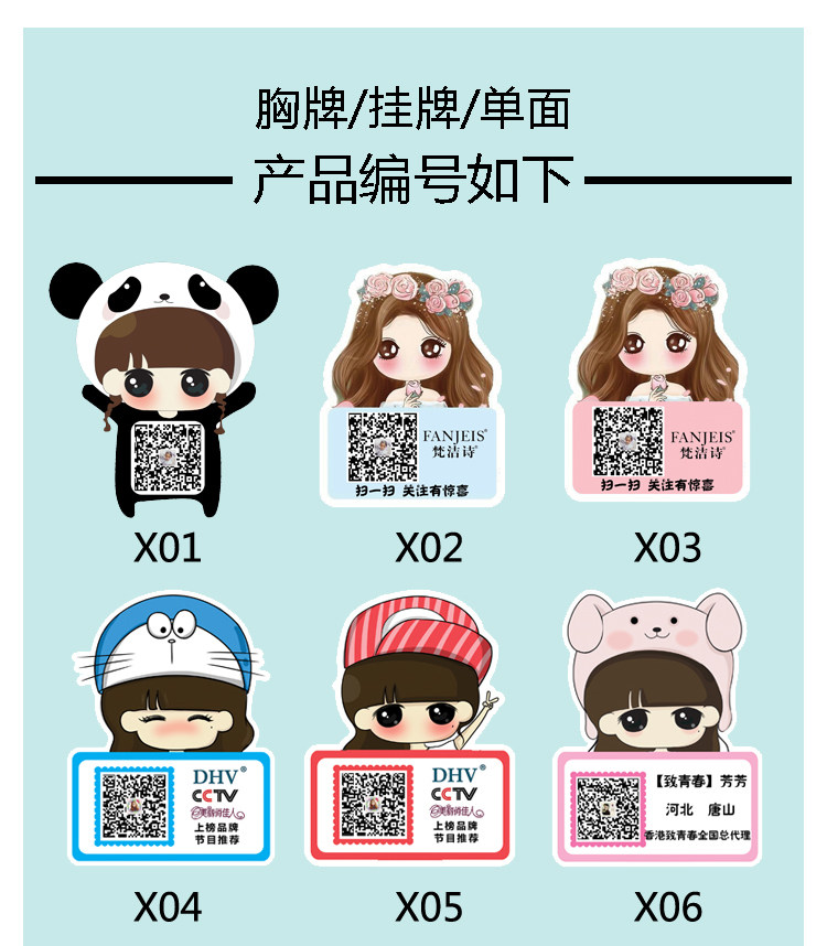 卡通掃街牌二維碼胸牌掛牌吊牌微商牌定制訂做高檔掃碼牌包郵推廣熱賣行情