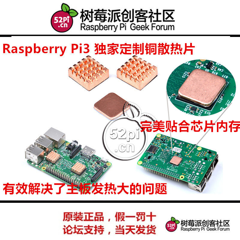 樹莓派2/3代散熱片純銅散熱片帶3M專用導(dǎo)熱散熱貼3片裝工廠直銷