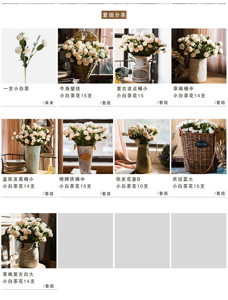 - 顏色分類:一支小白茶5個(gè)花頭銹牌鐵桶中+小白茶花15支鐵皮花壺B+小白茶花10支歡迎籃大+小白茶花15支復(fù)古波點(diǎn)桶小+小白茶花15草編復(fù)棺大+小白茶花14支草編桶中+小白茶花14支牛角壁掛+小白茶花15支藍(lán)鐵皮高桶小+小白茶花14支